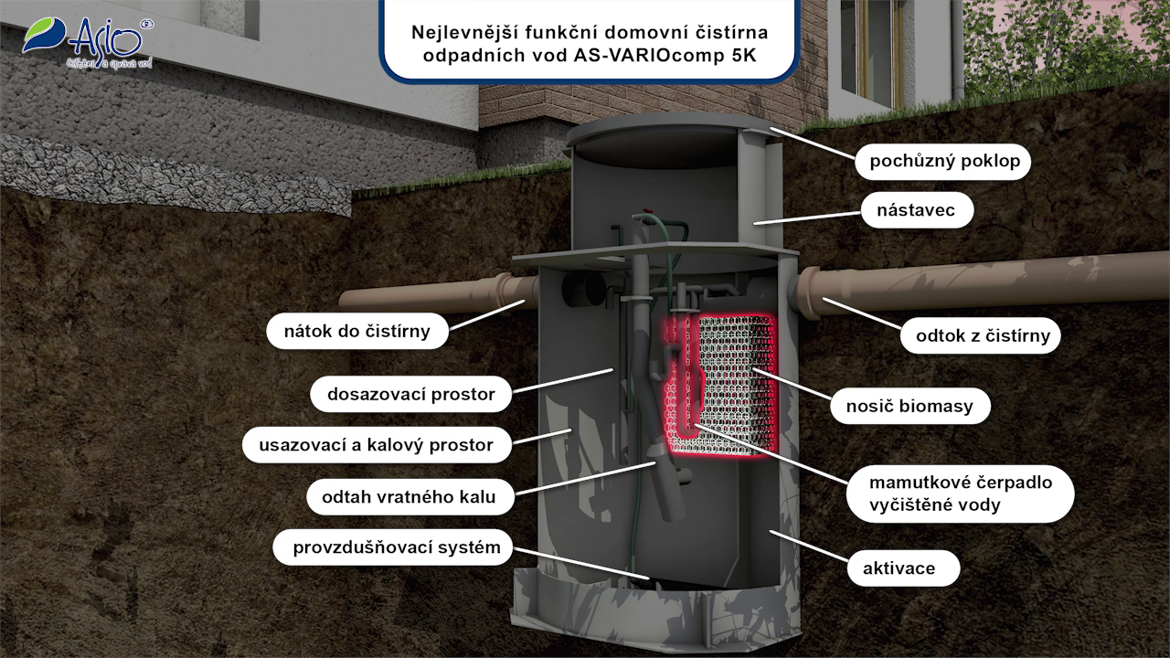 Čistička odpadních vod AS-VARIOcomp 5K je ideální pro rodinné domy nebo velikostně odpovídající (3-7 osob) obývané rekreační objekty a chaty.